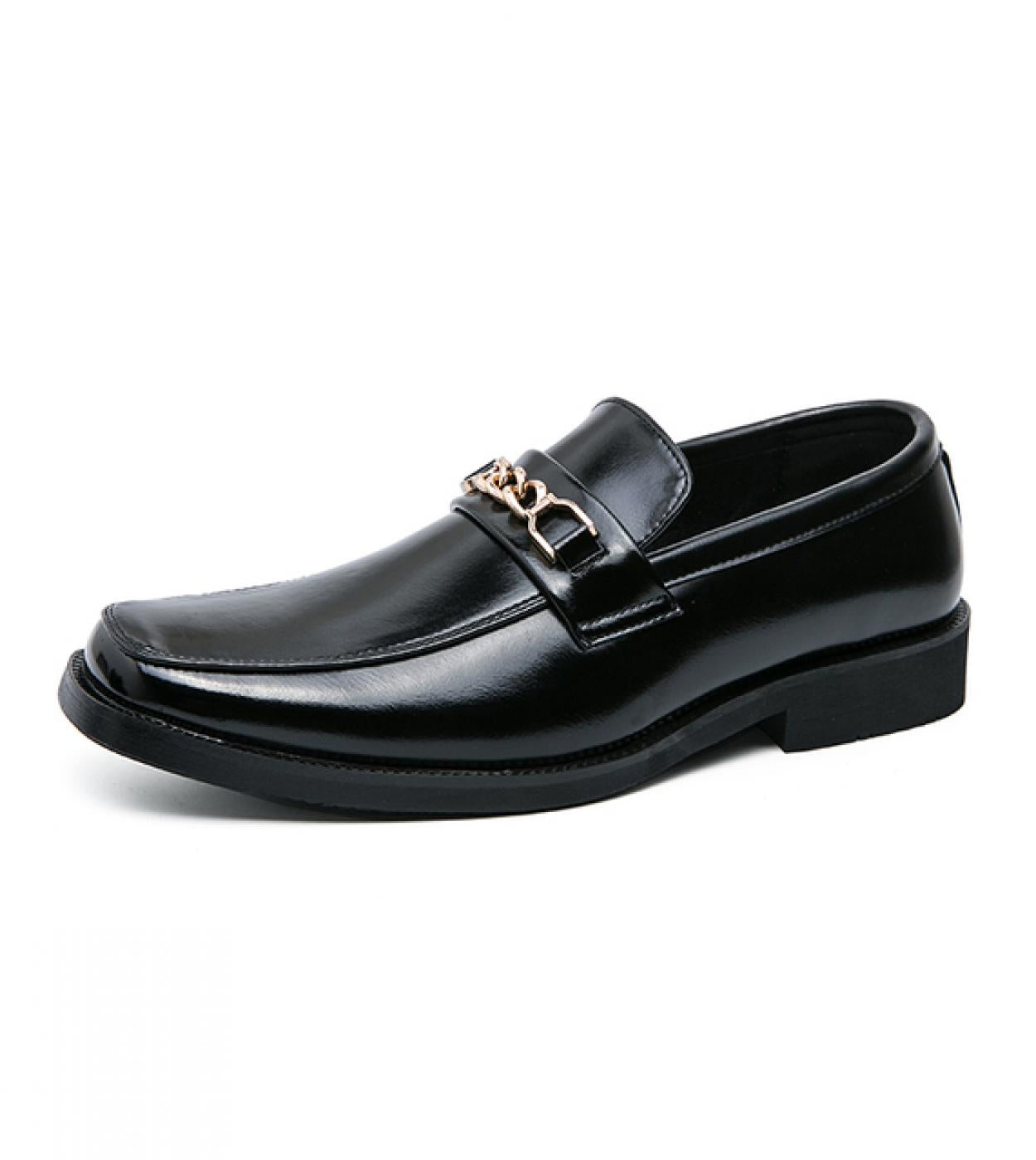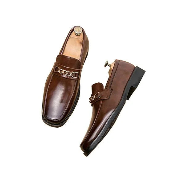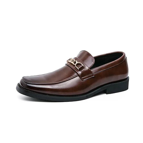 حذاء رجالي بدون كعب، بلون موحد مصنوع من جلد أصلي بتصميم مميز سهل الارتداء، عصري، كلاسيكي